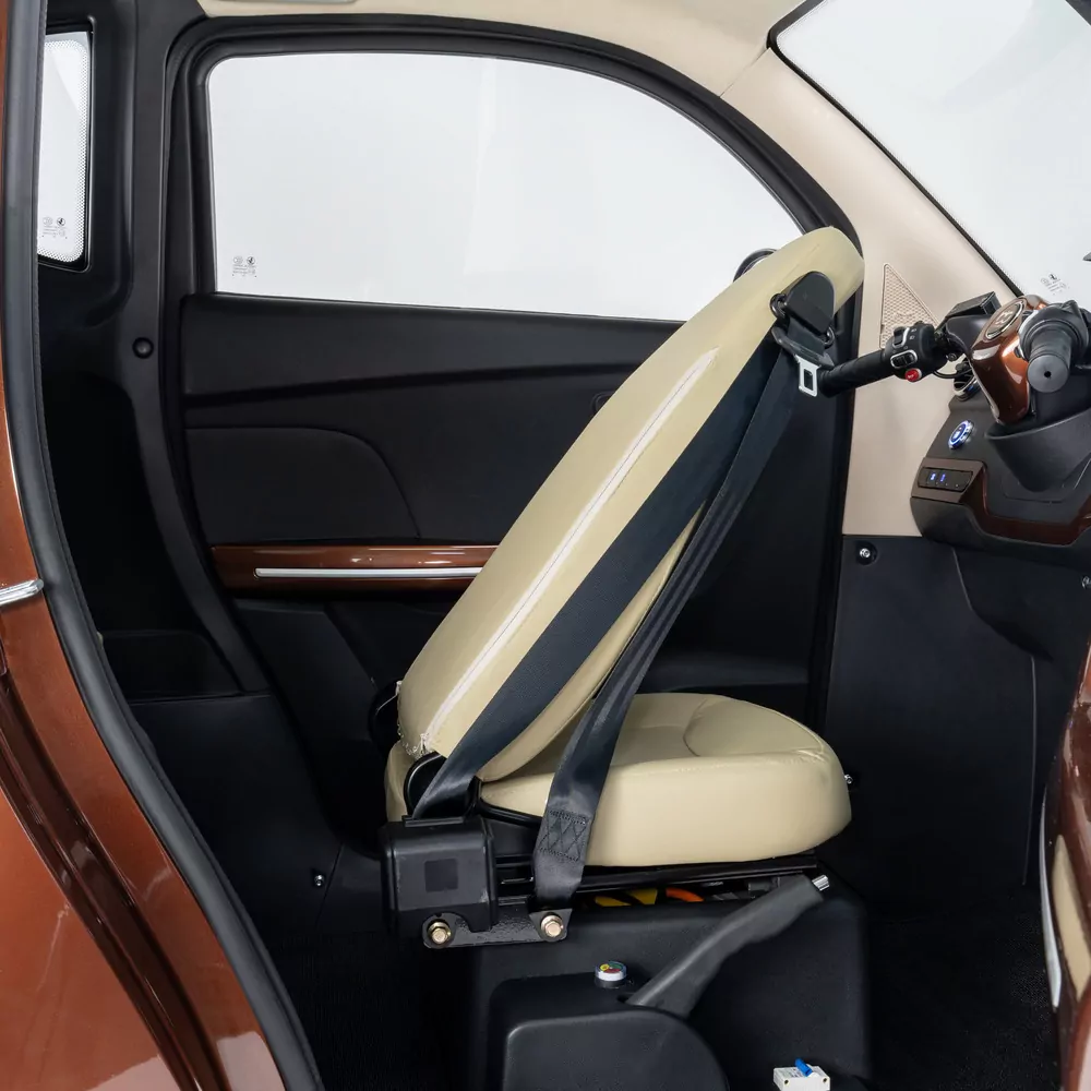 Wygodne, ergonomiczne siedzenie z regulacją gwarantuje pełen komfort nawet podczas dłuższych podróży. Dodatkowo pojazd został wyposażony w wycieraczki oraz wentylację, co jeszcze bardziej podnosi komfort użytkowania.